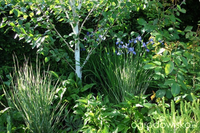 Irysy syberyjskie dają radę w okolicach brzozy Doorenbos.