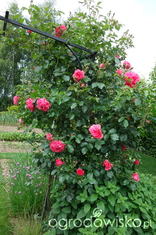 Róże przy pergoli nabierają masy. Podwiązuję je, ale nie zawsze udaje się uzyskać wystarczająco szerokie przejście.