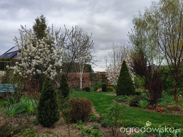 Magnolię mocno przetrzepało. Z bliska widać uszkodzenia mrozowe, ale z daleka wygląda jako-tako.