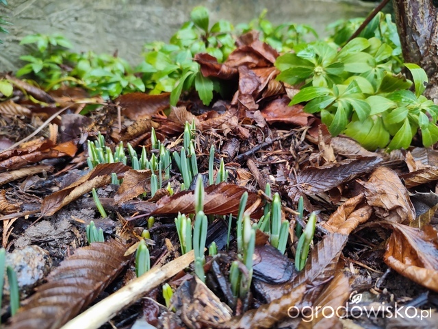 Odkryłam, że turzyce pagórkowate wypuszczają już zielone źdźbła, a przebiśniegi pokazują kiełki.