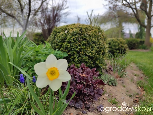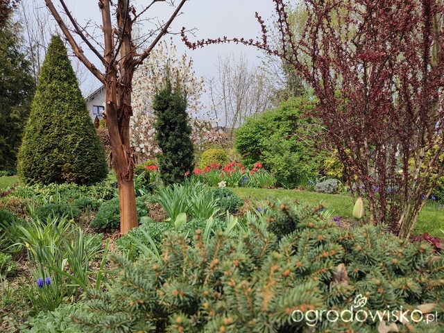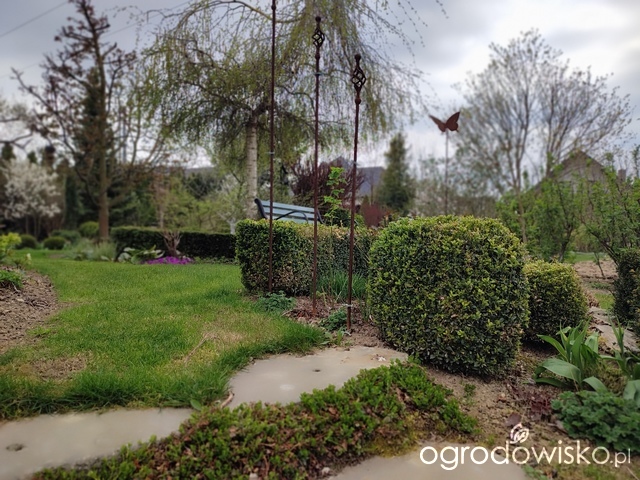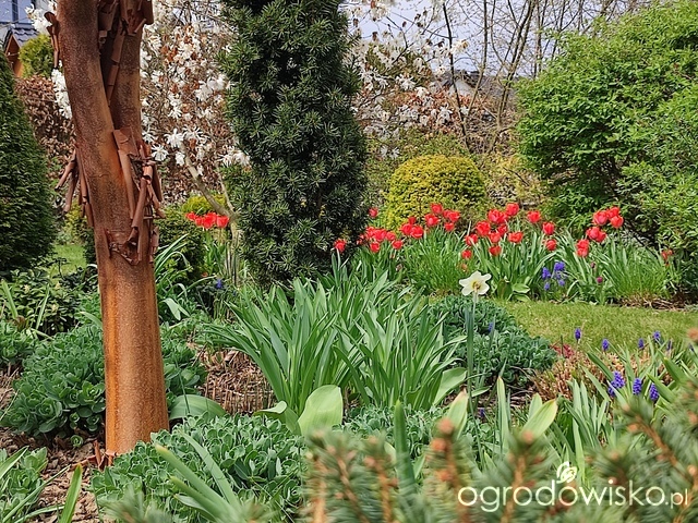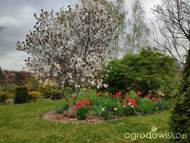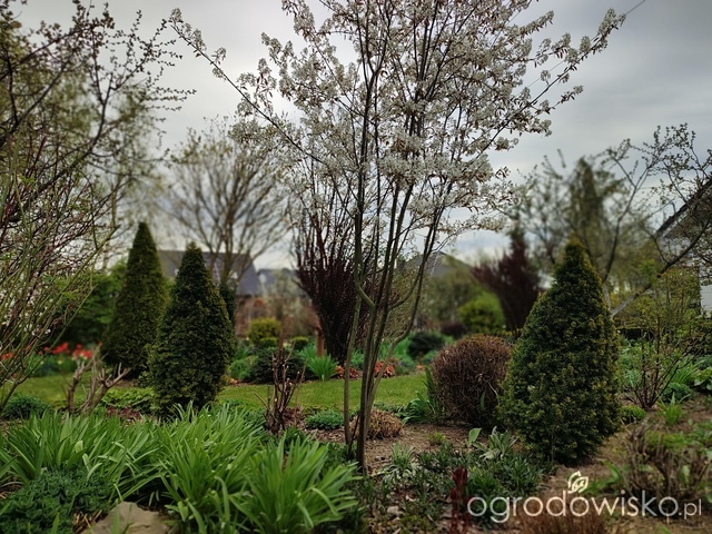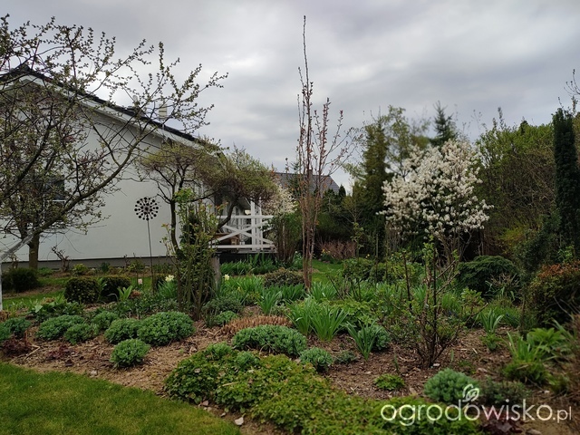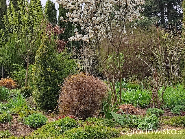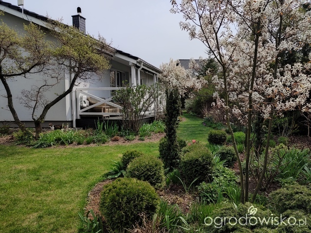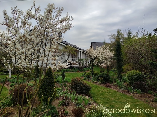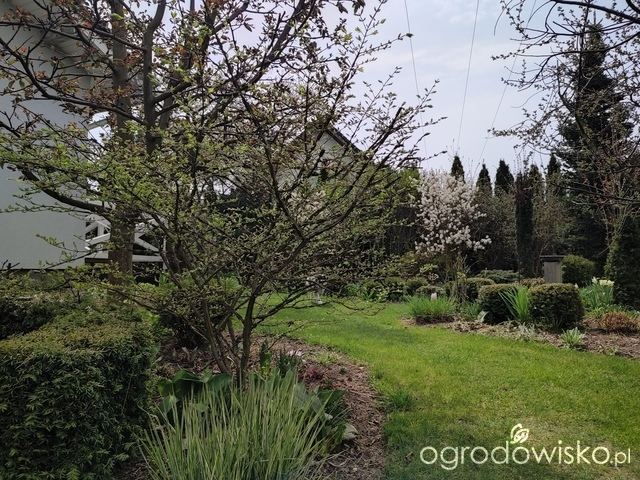Przez kilkanaście dni pięknie kwitła magnolia stellata. Niestety, wystarczyła jedna noc ze spadkiem temperatury poniżej zera, aby straciła połowę swojej urody.