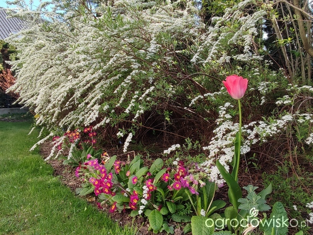Tawuły kwitnące na biało bardzo lubię. Pachną intensywnie, mają cudowny fontannowy pokrój i niezłe jesienne przebarwienia. Pestka ma z nich wielometrowy żywopłot. Nie chorują, znoszą susze i praktycznie są bezobsługowe. Swoim pod koniec zimy wycinam u podstawy 2-3 najstarsze gałęzie.