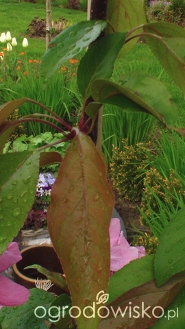 Młode listki są z nutka brązu, później zielenieją. Pąków już nie ma. Są kwiaty. Zachowuję tylko zdjęcia w szerokim kadrze dla zimowego dumania o układach kompozycyjnych. Detale wyrzucam niestety.