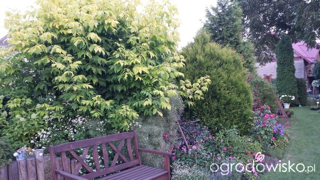 Klon jawor 'Brilliantissinum' - ma co prawda bardzo kulistą koronę, ale liście mają niespotykany kolor bursztynu wiosną i przez cały sezon barwa sie zmienia...aż do miodowego złota.