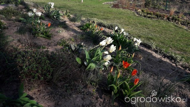 Wiosna w pełni. U nas dzisiaj 19 stopni. Słońce i wiatr bardzo wyruszają glebę. Biale tulipany zaczynaja przekwitac a pomarańczowe się rozkręcaja. To już pewnie ostatnie fotki, kiedy oba kolory jeszcze sa razem. Ale i tak sie ciesze że eksperyment sie udał.
