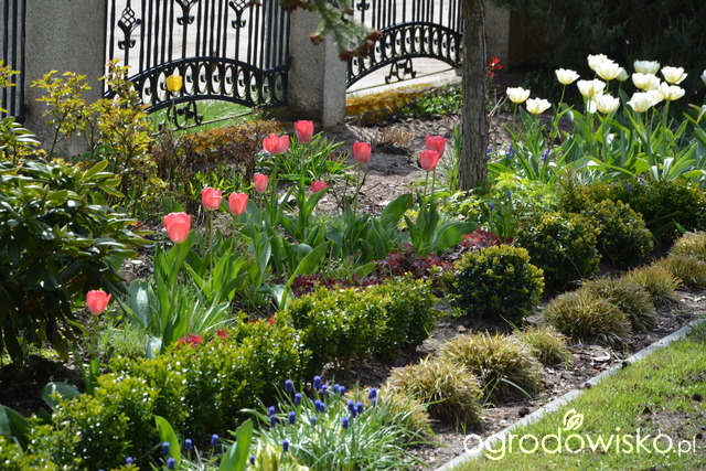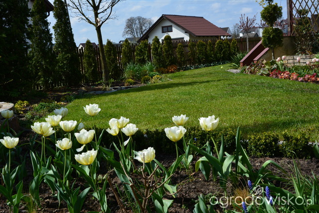 W pierwszym roku, myślałam, że zakwitną razem. Tydzień tak kwitły. Trochę byłam zła, ale potem okazało się, że fajnie wygląda, jak jedne kwitnące tulipany zastępują drugie. Cały czas coś się dzieje na rabacie. Wykopałam w czerwcu, jesienią posadziłam na nowo.W tym roku już nie będzie rewolucji na rabacie, zostaną, nie będę ich wykopywać