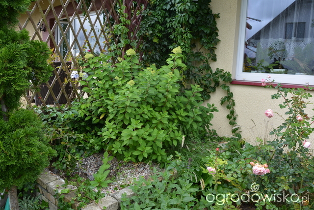 Pada i pada, nawet do ogrodu nie da się wyjść. Akurat nie mam czasu, bo uruchamiamy dziennik, a przy tym dużo pracy, ale już mam prawie wszystko ogarnięte, wszyscy zadowoleni, dziś juz bym chciała wyskoczyć do ogrodu pogadać z zielskiem. I chciałabym przesadzić tą hortensję, co się tak ociąga z kwitnieniem. Chyba ma za mało słońca, tak sobie myślę. Zwolni mi się jedna donica przy tarasie, przy różach. Zastanawiam się, czym ją zapełnić. Dałabym trawy, ale nie wiem, czy na pewno i jakie? Mało słońca tam jest po południu, mimo, że jest to strona wschodnio-południowa... Pergola zacienia.