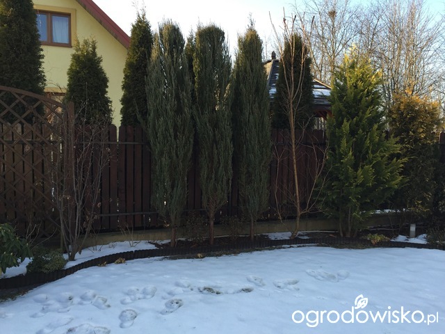 Zakupiłam tyle róż już na wiosnę, że muszę sporo trawnika uszczknąć. Powstaną 2 nowe różane rabatki - narożna pod wiśnią i tamaryszkiem oraz długa choć wąska przed jałowcami. Ciągle się zastanawiam co do róż tam dodać, jakie byliny.