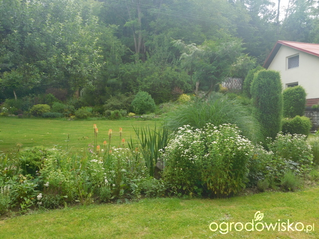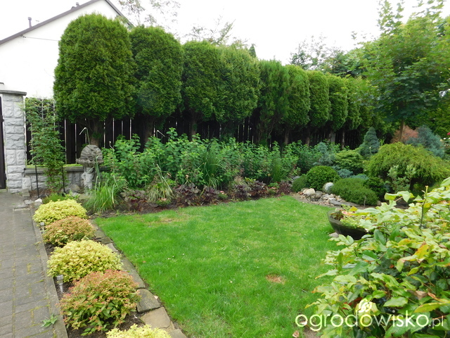 Cały czas coś mi na tej rabacie brakuje, zwłaszcza teraz na przełomie czerwca i lipca jak hortensji jeszcze nie ma. W tamtym sezonie na jesieni posadziłam żurawki tak dość gęsto, nazwy nie znam ale duże o bordowych liściach wydawało mi się, że będzie fajnie. Jednak efekt nie jest taki jak myślałam pomimo, że nawet całkiem fajnie się rozrosły i kwitną tylko nie wiem dlaczego pędy kwiatowe się kładą, zamiast rosnąć ładnie do góry.