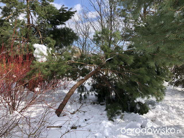 Sosny są bardziej rozłożyste. Widziałam moje otrzepała bym,ale musiałabym odgarnac śnieg aby do nich dojść. Trudno co będzie to będzie. Tuje i jałowce mi pogięło.