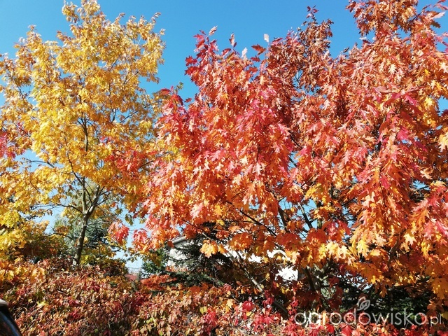 Drzewa pięknie przebarwione niby takie same a inne kolory np dęby