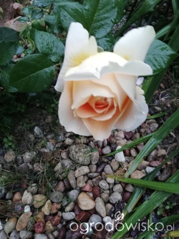 Róże ładnie kwitną. Tak kwitnie róża przy altance zmarzła pierwszy raz jeden badyl został