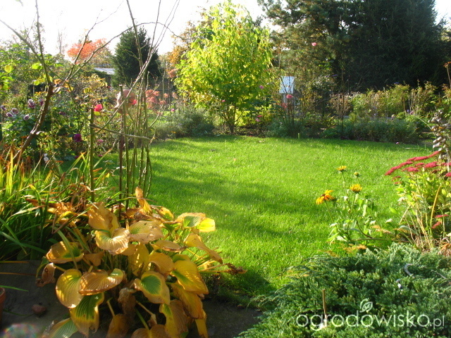 Basiu, miło Ciebie widzieć. Jak Tobie się żyje? U mnie raczej monotonnie. Myślałam, że jesień u mnie chociaż grzybami sypnie. Niestety znów pogoda do kitu. Może jeszcze ten tydzień mi pozwoli zmienić mury na leśne pagóry. Przydałby się słoik suszonych, bo na taki 2 litrowy to trzeba 3 koszyki mieć znalezione. A ogród w międzyczasie, po troszeczku, się sprzątnie, albo i nie.