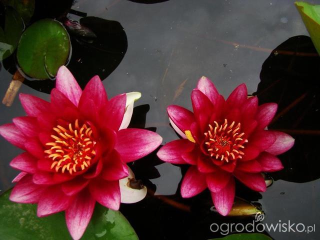 Zazwyczaj na starych kłączach, wśród dobrze zasiedlonych grzybieni kwiaty są czerwone (górna część płatków korony podchodzi bielą), główne w stawie u rosnących w gruncie, w oczku w pojemniku trudno osiągnąć ciemniejsze wybarwienie. W większości w oczek wodnych kwitnie na różowo.