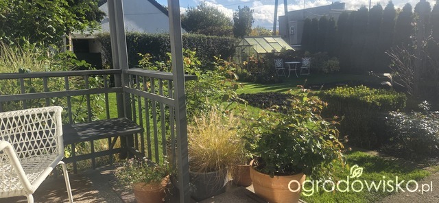 Jesienna dokumentacja zdjęciowa. Strona wypoczynkowa sama trzyma się w ryzach, troszkę kanty przycinaliśmy i troszkę chwaścików na rabatach wyszudrałam.