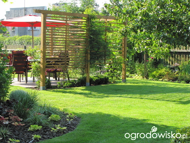 Pergolkę mąż zbił sam z belek i listewek, inspirację znaleźliśmy w internecie - szukaliśmy czegoś nowocześniejszego niż kratki, a tylko takie gotowe elementy były dostępne.