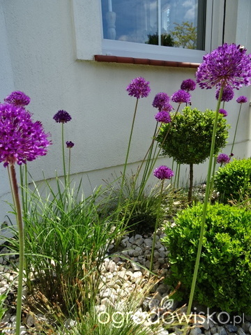 Czosnki Purple Sensation pięknie w tym roku kwitły. Teraz są zielone, ale pewnie jeszcze trochę postoją.