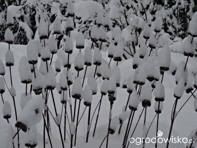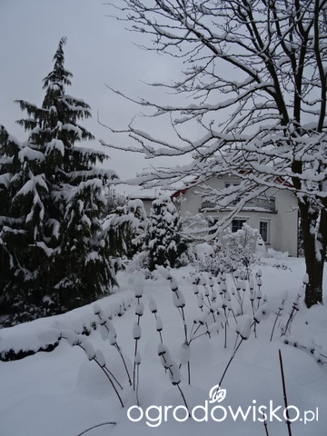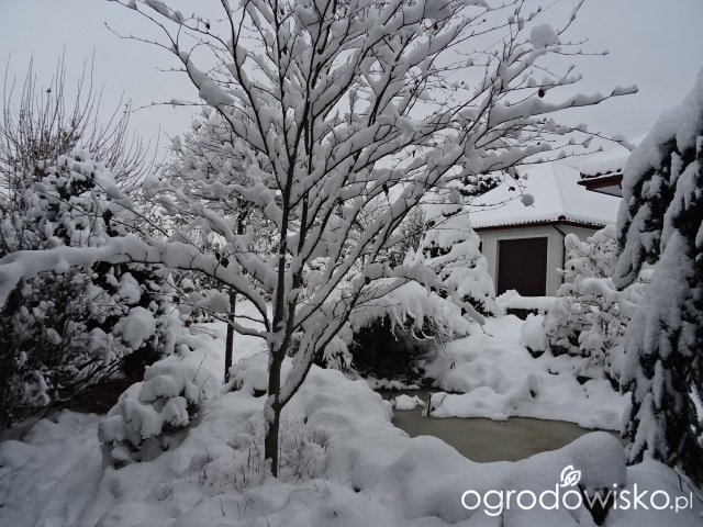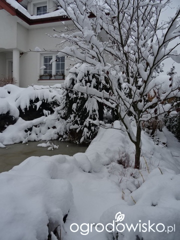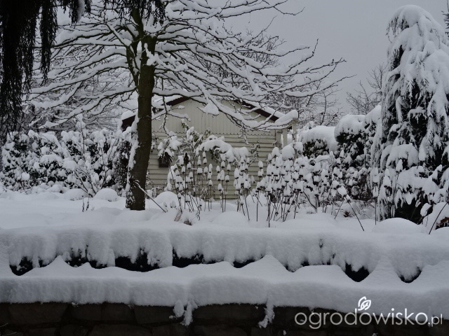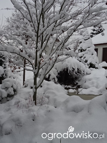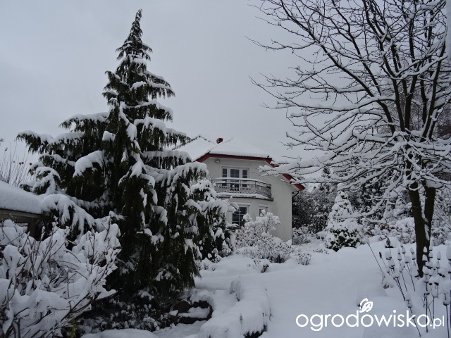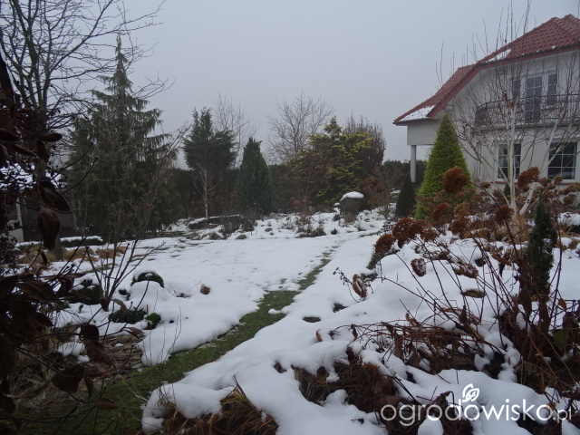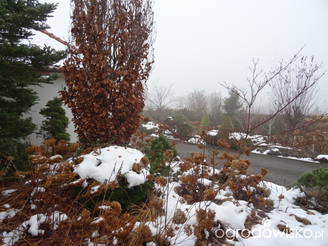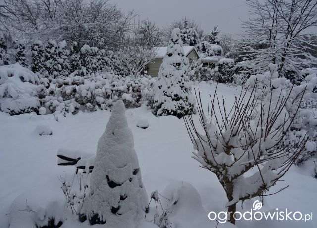 Popadało dość solidnie. Szczerze, patrząc po prognozach nie spodziewałam się takiej ilości śniegu. Musiałam przebiec się po ogrodzie, bo te duże ilości śniegu na roślinach jeszcze przymroziło i powstały grube i ciężkie bryły lodu. Prawie połamało mi laurowiśnie, takie ciężkie.