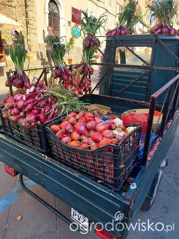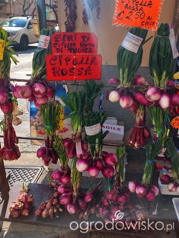 Hit Calabrii to czerwona słodkawa cebula di Cipolla Rossa. Porasta pola, okupuje stragany.