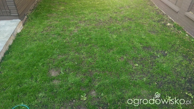 przez ostatnie kilka dni nie dosiewałam ani nie nawoziłam, sugerując się, że można tylko zaszkodzić a poza tym ekipa ogrodzeniowa dopiero wyszła z ogrodu. trawa była skoszona jedynie, kiepsko rośnie, teraz wygląda tak. przypomnę, że w końcówce marca było sypnięte nawozem Grass długodziałającym NPK 19-28-5 a trawnik jest z zeszłego sezonu z września.?