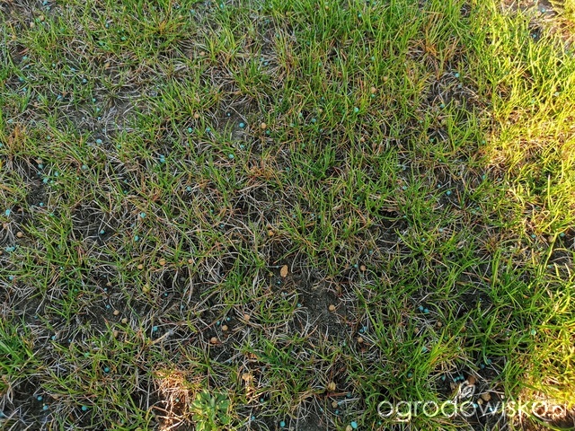 W marcu była wertykulacja, tydzień temu nawieziony florowitem, podlewany codziennie. Przez dwa lata z rzędu to dzialalo szybko a tym razem niepokoję się co mu dolega. Zazielenil się znacznie ale jest dużo suchych miejsc jeszcze. Czy mogę prosić o wskazówki jak działać.