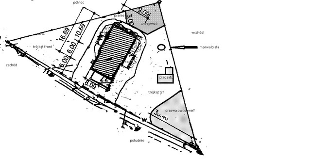 Po pierwszych samodzielnych próbach narysowania planu działki poddałam się i zeskanowałam mapę...Może lepiej mi pójdzie z fragmentami niż z całością.