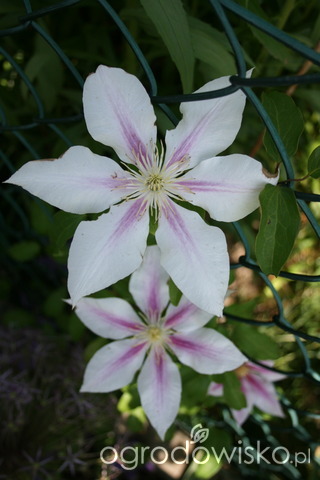 Clematis mandschurica z maleńkimi kwiatuszkami i Beautiful Bride z ogromnymi kwiatami.