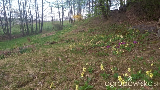Pierwiosnkowo. Widoczne różowości darowane od sąsiadki, a z dosadzanych marketowych przetrwał tylko taki brudnobiały.