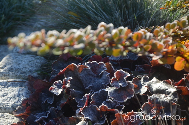 Mróz nieźle pomalował roślinki,tak wyglądały moje żurawki