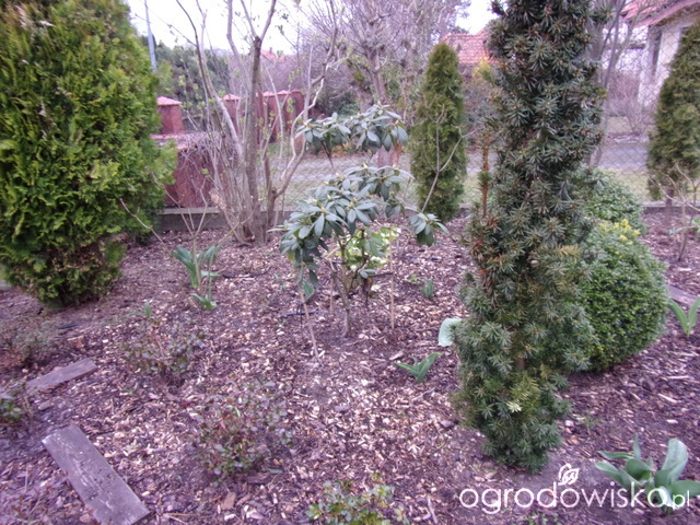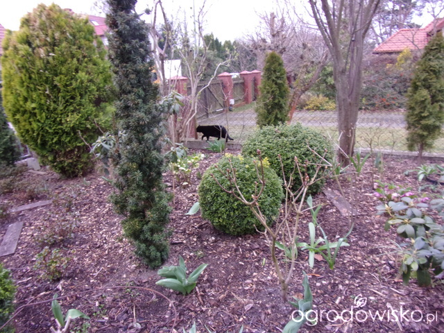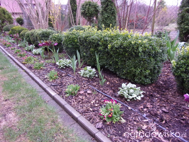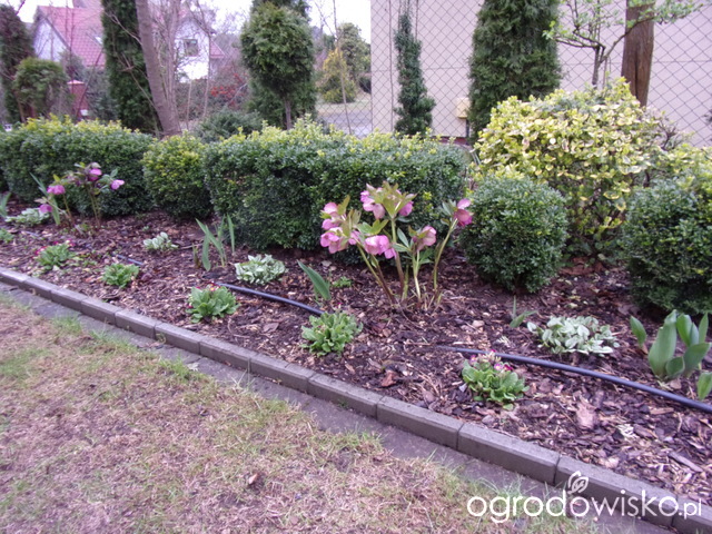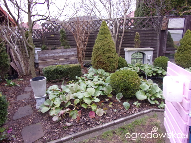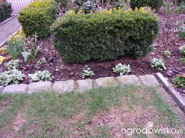 Tutaj, z przodu rabaty dosadziłam bergenie. Mam nadzieję, że przyjmą się bo wsadziłam same kłącza bez korzonków. Jesienią też wsadziłam tu same kłącza ale tak poczerwieniały po zimie, że usunęłam je.