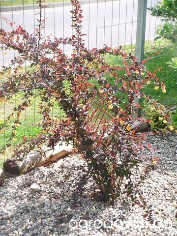 'Ola' – polska odmiana, bardzo popularna, różowe kwiaty, purpurowo-czerwone owoce, pokrój rozłożysty