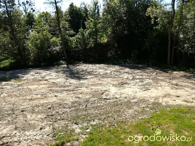 Zdjęcie jest zrobione z wjazdu na działkę, jak widać wjazd jest do dokończenia.