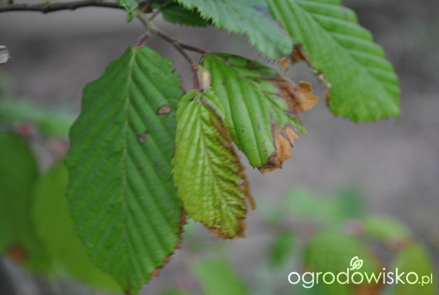 Typowy objaw suszy z dodatkiem szkodnika pordzewiacza grabowego, któremu susza sprzyja. Teraz szkodnik przestaje żerować i wędruje do pąków by przezimować. Odezwie się za kilka miesięcy, gdy temperatury wiosenne wzrosną powyżej 10*C choć zaczyna żerować w pąkach już wcześniej. Nie jest widoczny gołym okiem - wielkość jego to dziesiętne mm.