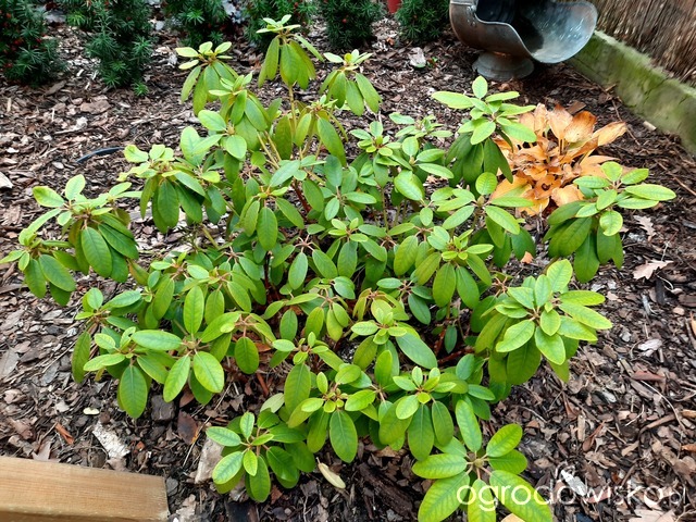 roślina kwitła rośnie obok innych różaneczników, które mają się dobrze.