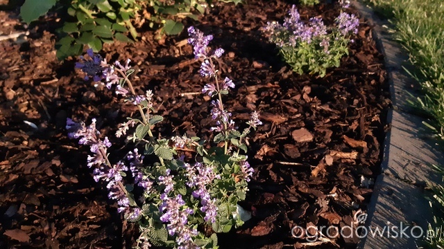 Kocimiętki posadziłam na razie jako obwódkę przed różami. Mimo że czytałam że odmianowe kocimiętki na koty nie działają to tę odmianę kot sąsiadów już mi skubie .