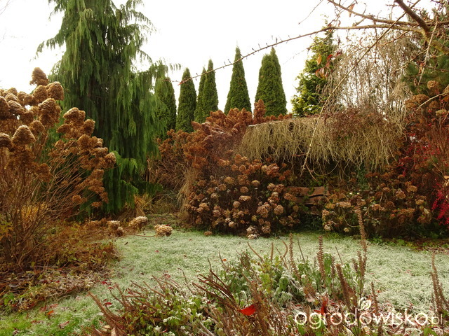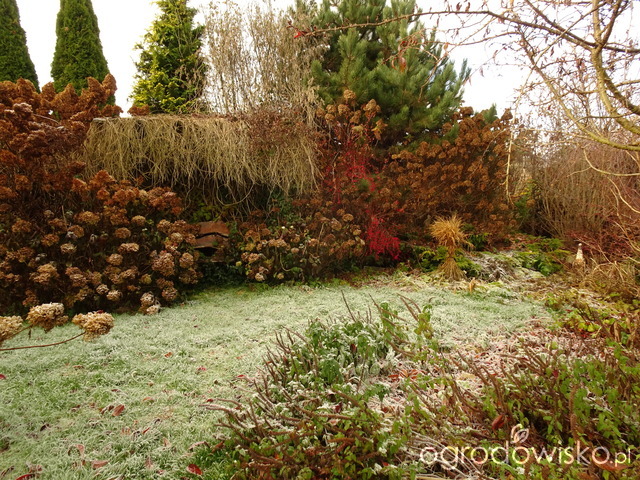 Sylwuś, piękne u Was te listopadowe widoczki! I kwiatuszki jakieś jeszcze cieszą, a może już, bo niektóre to jakieś wiosenne chyba? Co to na biało kwitnie na gałązkach? Jakaś kalina?