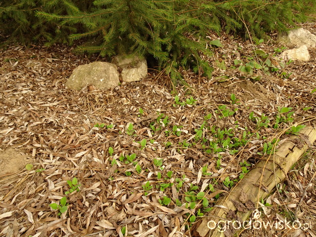 na razie pokazała się tylko jedna kępka czosnku niedźwiedziego...