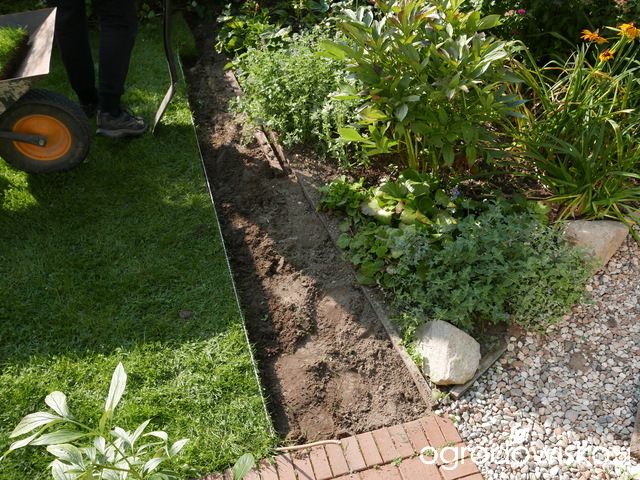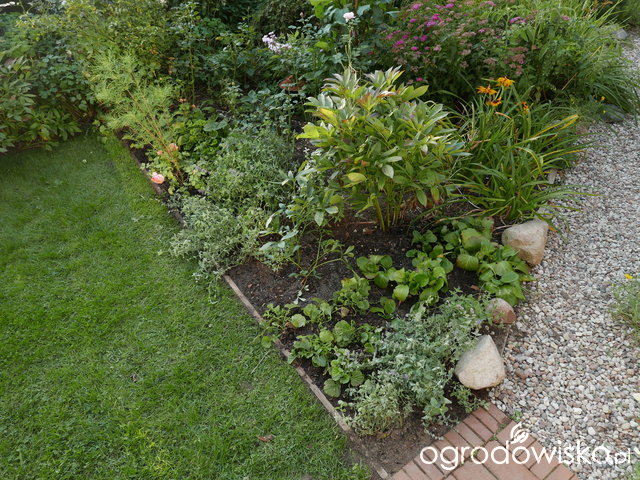 Na rabatkę trafiły: nowa piwonia Sarah Bernard, dla powiększenia kępy koleżanki-bliźniaczki, 4 mini sadzonki kuklika Mai-Tai, które przyszły po 3 miesiącach czekania, jestem pewna, że z tej ulgi oczekiwania na nowy dom, będą rosły znakomicie oraz róża Chippendale (razem z onętkiem, który się jej wsiał do donicy), która dotąd próbowała rozsadzić donicę, wreszcie się nad nią ulitowałam. Poza tym rozsadziłam istniejące kukliki Pink Fluffy - z trzech jest pięć oraz miniaturową bergenię, która kwitnie na biało - o ile przymrozek jej nie załatwi (a ponieważ regularnie przedwiośnie ją demoluje, prawdopodobnie poszukam jej bardziej zacisznego miejsca już niedługo). Rozsadziłam też kocimiętkę, którą rok temu wydłubywałam ze ścieżki w ogrodzie mojej siostry, pobierając w ten sposób sadzonki - nie niszcząc jej ogrodu - w tym roku jest jedną z moich roślin numer 1, za żywotność i niezmordowane kwitnienie.