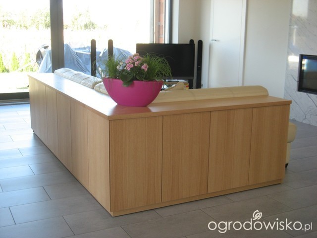 Mam niemalże identyczną kanapę narożną, tylko w brązowej alcantarze. Wiesz, że też miałam podobny pomysł na zabudowę, bo początkowo kanapa stała na samym środku salonu Tylko ja bym tę zabudowę podzieliła na 3 elementy i środkowy byłby otwarty z półkami na książki, ale faktem jest że ta wersja też jest bardzo praktyczna, sporo się tam zmieści