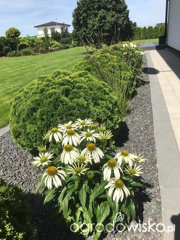 Tu trochę jeszcze łysawo dlatego, że ciagle kombinuje z nasadzeniami. Teraz chyba już tak zostanie Kaliny i hortensje się zagęszczą powinno lepiej wyglądać.