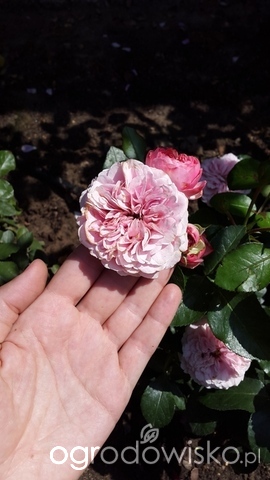 Ostatni mój zakup to biała róża wielkokwiatowa bez nazwy, może ktoś ją rozpozna? Łodygi sztywne, wyprostowane z niewielką ilością zielonkawych kolców nie uginają się pod ciężarem 10-11 cm kwiatów. Pąki są kremowe, po rozwinięciu kwiaty są pełne mają białe pofalowane płatki a środek kremowy, zapach lekki, owocowy. Na łodygach rosną po 3-4 kwiaty, są też pojedyczo rosnące ( wydaje mi się że na tych które wcześniej były zaatakowane przez mączniaka). Pokrój krzewu zwarty, wyprostowany, liście (5 listków) duże ciemnozielone. Mam ją pierwszy rok i urosła do 80 cm, prawie od początku zapadła na mączniaka prawdziwego z którym cały czas walczę.