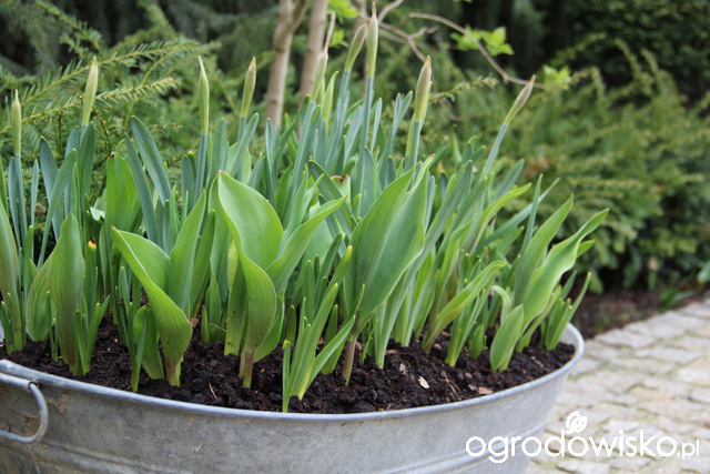 W tym roku (a w zasadzie zeszłej jesieni) pierwszy raz posadziłam tulipany w pojemnikach. Obecnie wyglądają tak: